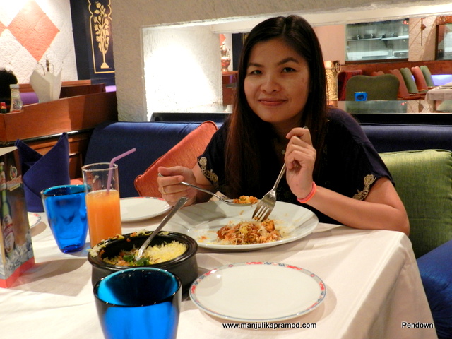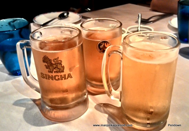 Soon the main course made its way to our table while we were still roaring with laughter. Songkran mood had arrested us all. Feeling high on beer, buttermilk and good taste, we were all having a good time. Having given up all our inhibitions we felt absolutely cozy and comfortable in the Indian ambiance.