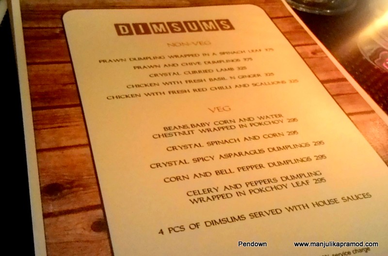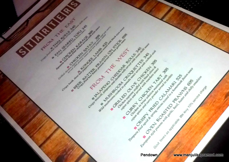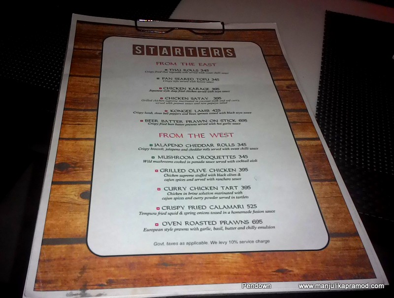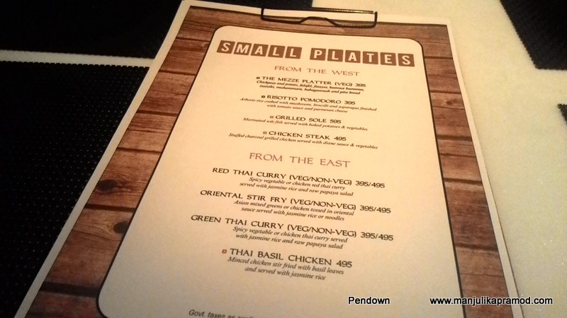 Something that we really loved about the menu was its subsections- ‘From The East’, ‘From The West’ and ‘From The Home’. It actually helps to locate and find just the right thing that you have been looking for. The Small plates is a good idea too, though I always feel there should be an option for ‘Combinations as well’ where one can club two or more different snacks and order a combination platter.