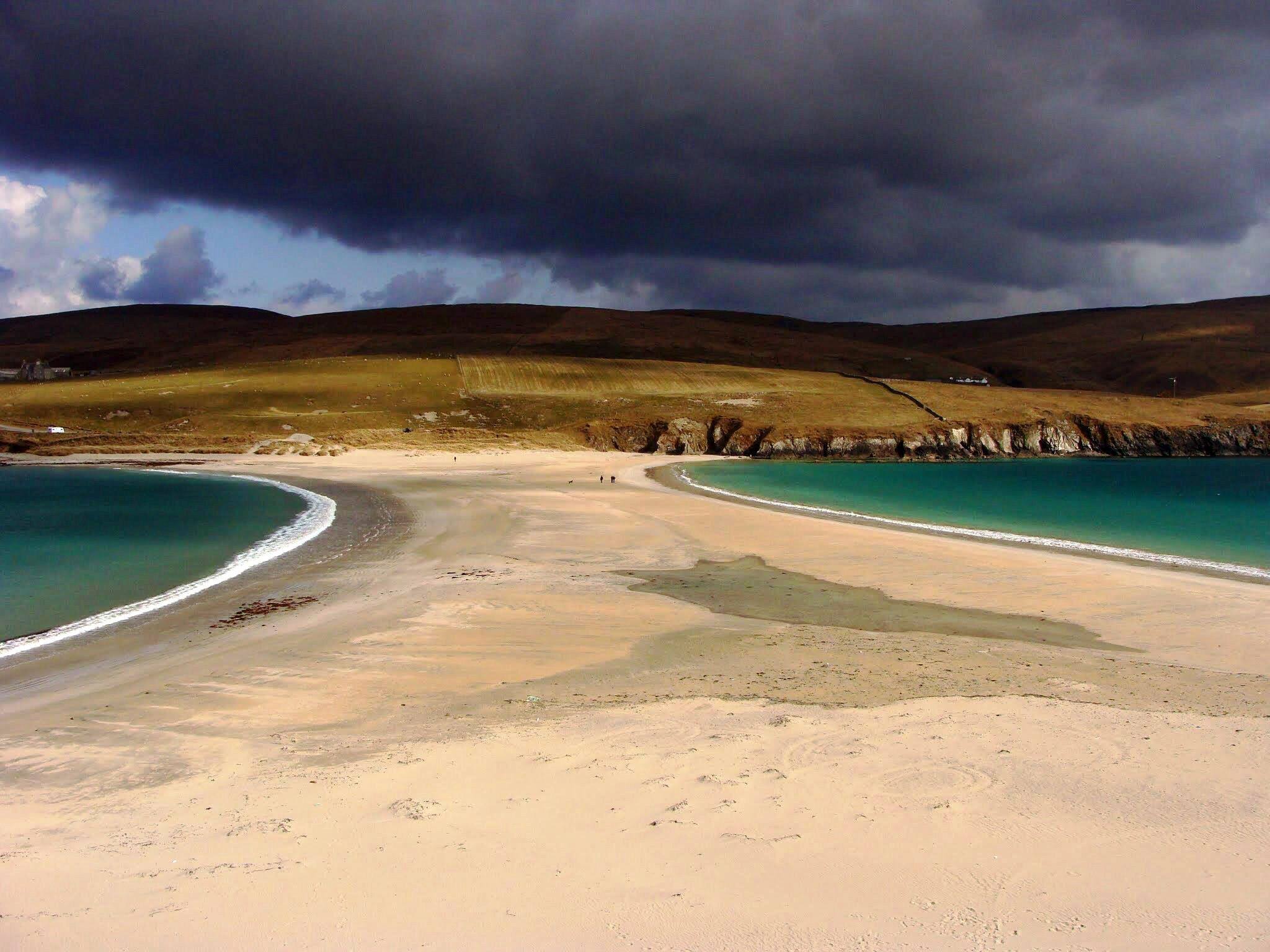 St Ninian’s is one of the finest sand tombolos in Europe, and it is the largest active tombolo in the UK. This pristine beach is our favorite barbecue destination!